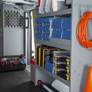 Organize your tools and separate cargo with durable bin systems and steel partitions.