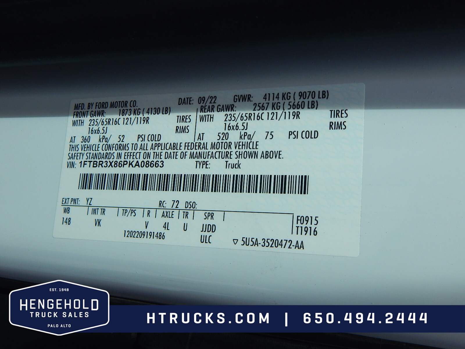 Vehicle Features• HIGH ROOF EXTENDED BODY - 148” LONG WB• Eligible For Section 179 Tax Writeoff • Optional Bin Package or Ladder Rack Available At Affordable Prices • Low Miles • Balance of 60 Month/60,000 Mile Powertrain Limited Warranty • AC • FM-USB-Bluetooth - FordPass Connect • Tilt Telescope Wheel w/Audio Controls • Limit Cruise Control • Power Windows • Power Door Locks • Keyless Entry • Power Mirrors • Lane Keeping Aid • Electronic Speed Limiting Device • Rear Mat • D-Rings In Floor • Factory Cargo Area Wall Panels • Backup Camera • Step Bumper • Sliding Side Door No Glass • 180 Deg. Panel Rear Doors No Glass • AdvanceTrac Roll Stability Control |