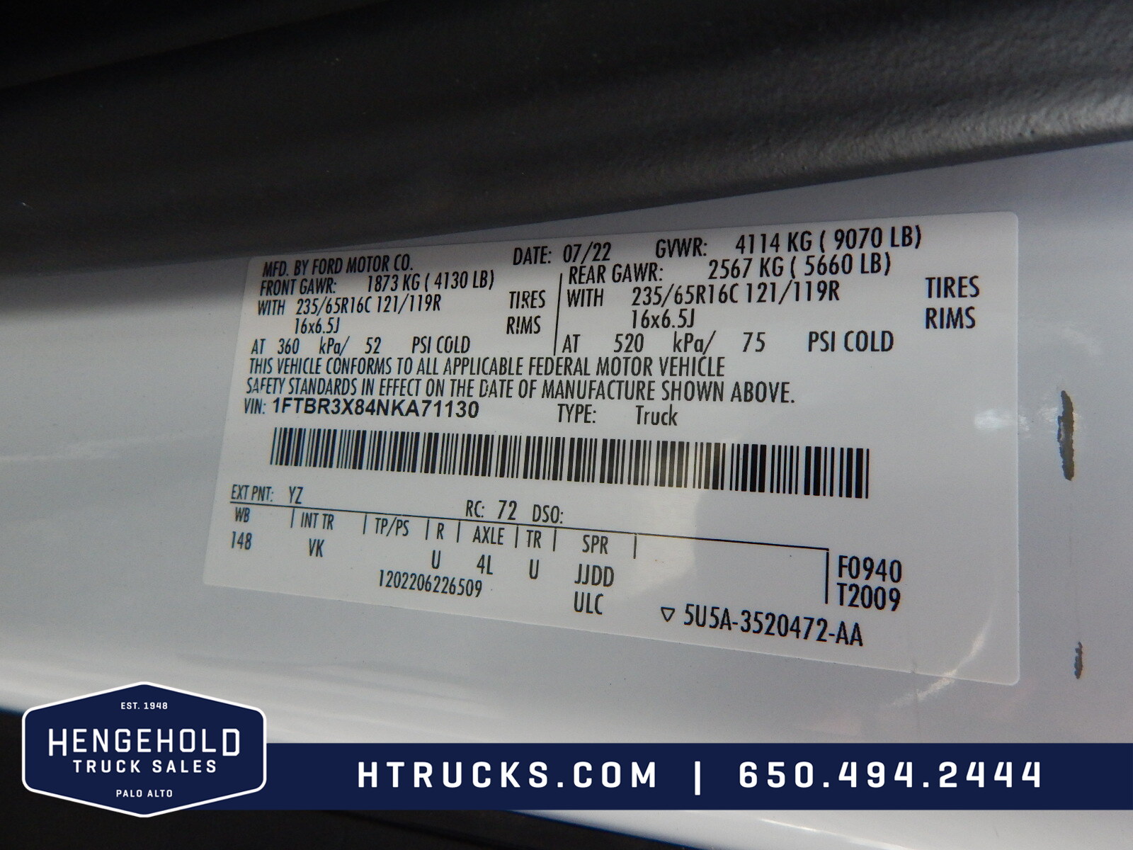Vehicle Features• REFRIGERATED VAN With 115V STANDBY PLUG-IN• HIGH ROOF EXTENDED BODY 148” LONG WB • Eligible For Section 179 Tax Writeoff • Balance of 60 Month/60,000 Mile Powertrain Limited Warranty • AC • FM-USB-Bluetooth- FordPass Connect • Tilt Telescoping Wheel w/Audio Controls • Limit Cruise Control • Power Windows • Power Door Locks • Keyless Entry • Power Mirrors • Lane Keeping Alert • Backup Camera • ThermoKing V-320 Refrigeration Unit with In Cab Controls & 115V Standby Plug In • Kemlite Lined Walls & Ceiling • Diamond Plate Aluminum Floor • 6’ Inside High • 12’9” Inside Length • Step Bumper • Sliding Side Door • 180 Deg Panel Rear Doors • Cargo Area Lighting • AdvanceTrac Roll Stability Control |