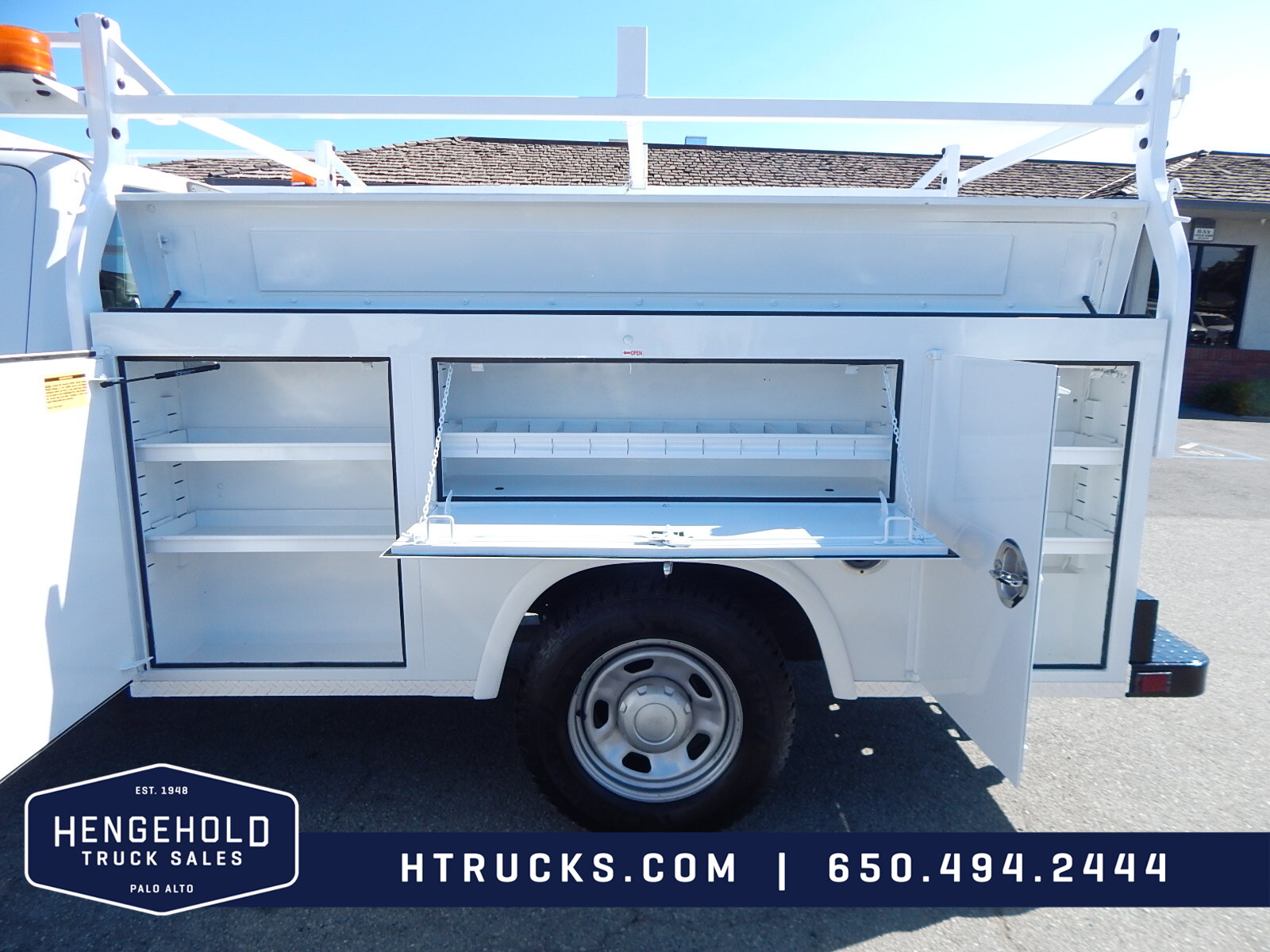 2019 Ford F350 9' EXTENDED CAB Utility on Single Rear Wheels with RACK & SLIDING CENTER COVER